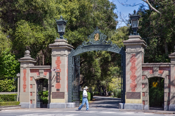 Today all that remains of the enormous estate are a couple of gates and fountains. The red brick wall that once bordered it still stands along Middlefield Road.